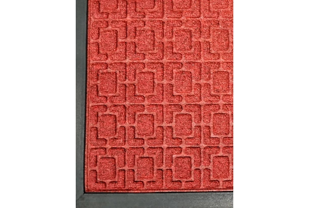 Rohožka v jednoduchom červenom dizajne s vystúpeným geometrickým vzorom má gumové čierne okraje. Rohožka spoľahlivo odstráni nečistoty a vlhkosť z obuvi. Rozmer 40×60 cm.