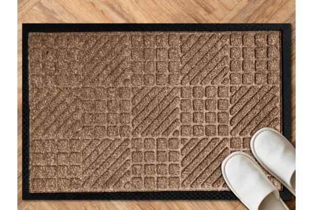 Rohožka zaujme svojimi vzormi štvorcov a prúžkov v hnedom prevedení. Navyše spoľahlivo odstráni nečistoty a vlhkosť z obuvi. Rozmer 40×60 cm.