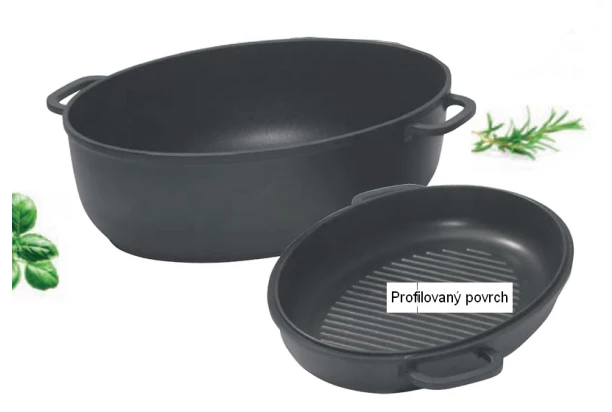Kvalitný objemný pekáč v oválnom tvare obsahuje praktický poklop, ktorý môžete využiť aj ako plnohodnotnú panvicu na smaženie alebo pečenie. Vyrobený z robustného hliníka s nepriľnavým povrchom. Rokmi preverený materiál sa postará o niekoľkonásobnú rýchlejšiu absorpciu tepla, dlhodobé udržanie teploty a ľahkú údržbu. Šetrí tak energiu i čas pri varení.