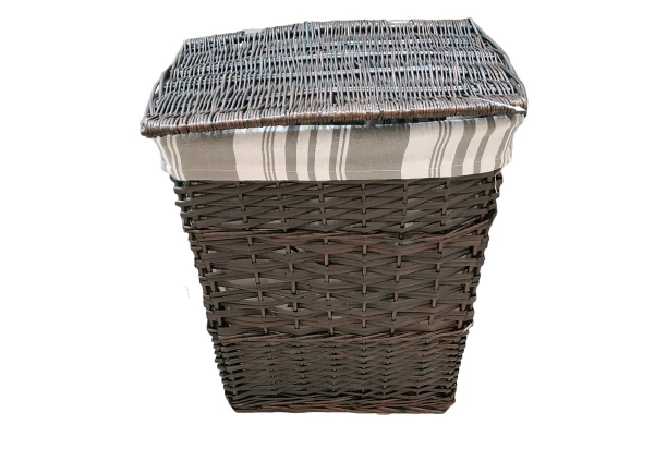 Nenechávajte špinavé prádlo na podlahe alebo kdekoľvek inde, ale schovajte ho do koša s vekom vyrobeného z prírodného vŕbového prútia. Kôš s rozmerom 37×48×26 cm v hnedom prevedení je vybavený šedo-bielou látkou. Pomôže Vám udržať poriadok v domácnosti a zároveň je pekným dekoračným doplnkom.