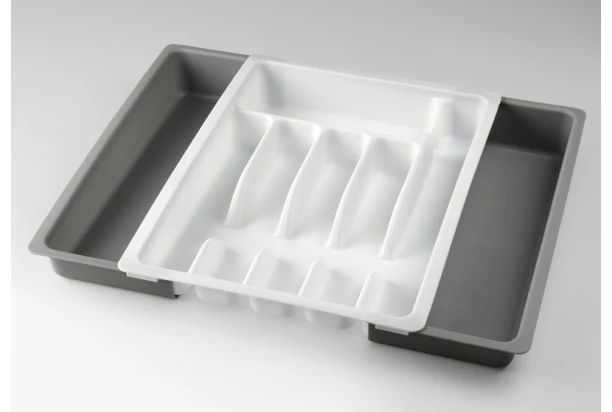 Kuchynský zakladač na príbory z kolekcie LifeStyle je vyrobený z odolného plastu, je ideálny pre praktické skladovanie príborov a kuchynských potrieb. Nastaviteľná šírka konštrukcia sa dokonale prispôsobí všetkým štandardným zásuvkám a ponúka 6 až 8 priehradiek na prehľadné ukladanie.
