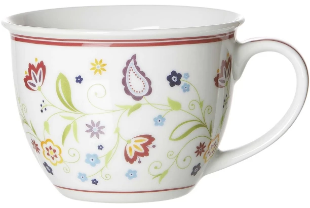Hrnček Jumbo s objemom 350 ml s krásnym kvetinovým dekorom v pestrých farbách urobí skvelý dojem pri každej príležitosti. Riad z kolekcie Shanti Doppio svojim romantickým dizajnom dodá Vášmu domovu idylickú atmosféru.