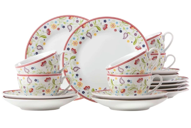 18-dielny kávový servis s motívom farebných kvetov, Vás bude na stole tešiť každý deň. Riad je vyrobený z vysoko kvalitného porcelánu a dokonale zapadne do každej kuchyne. Prestrite stôl a servírujte až pre 6 osôb.
