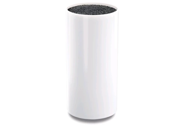 Exkluzívny stojan na kuchynské nože je vyrobený z bieleho plastu s vysoko lesklým povrchom. V strede sa nachádza vyberateľná kefová vložka z jemných plastových štetín, ktoré zabezpečia dokonalú ochranu nožov a ďalšieho kuchynského náčinia. Tento moderný stojan je nielen praktický, ale aj dekoratívny kuchynský doplnok.