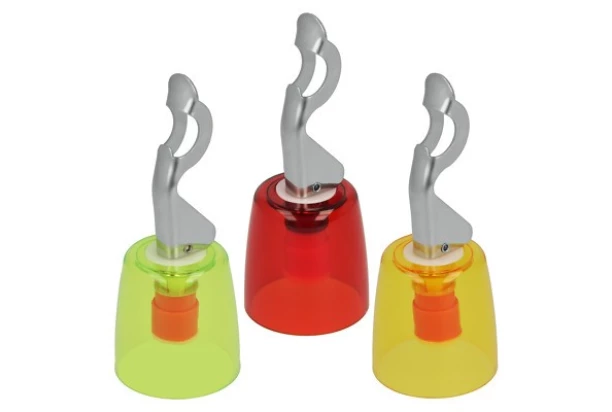 Plastová zátka v rôznych priehľadných farbách skvelo uchová obsah nedopitej fľaše.