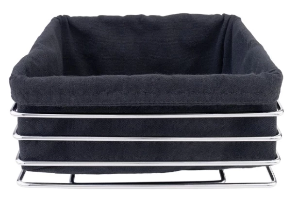Elegantný kôš z kovu s čiernou látkou pre servírovanie chrumkavého pečiva, chleba a ďalších pochúťok. Látka udrží pečivo dokonale teplé.