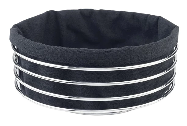 Elegantný zaguľatený kôš z kovu s čiernou látkou pre servírovanie chrumkavého pečiva, chleba a ďalších pochúťok. Látka udrží pečivo dokonale teplé.