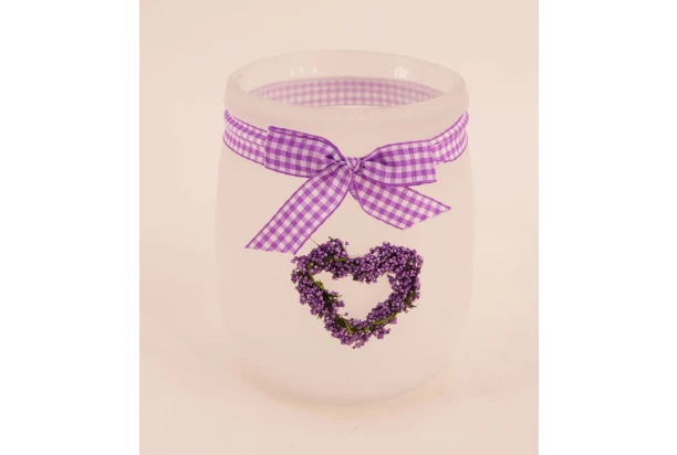 Sklenený svietnik levandulové srdce, výška 12,5 cm