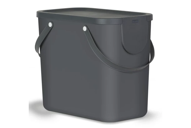 Odpadkový kôš s objemom 25 litrov v antracitovom prevedení je praktický pomocník do každej kuchyne. Kôš má veko a pohodlné rukoväte umožňujúce ľahké prenášanie. Dodávané s nálepkami (sklo, papier, plast), ktoré je možné prilepiť na prednú stranu veka a hneď budete vedieť, čo do koša patrí. Možno ľahko kombinovať so všetkými ostatnými veľkosťami radu ALBULA.