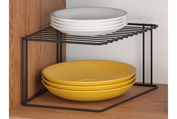 Kovový stojan je ideálny na priestorovo úsporné skladovanie tanierov, pohárov, misiek a ďalšieho riadu. Kovová polica má 1 poschodie a exkluzívnu povrchovú úpravu TouchTherm v matnej čiernej farbe. Možno umiestniť na pracovnú dosku alebo do skrine.