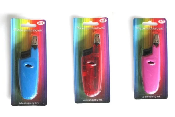 Malý univerzálny plynový zapaľovač do kuchyne s teleskopickým krkom je dodávaný v rôznych farbách. Zapaľovač na zapaľovanie plynových sporákov a rúr má dĺžku 9,5 – 17,5 cm.