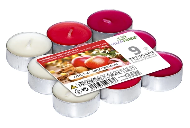 Sada obsahuje 9 čajových vonných sviečok v troch farebných odtieňoch, ktoré navodia relaxačnú a romantickú atmosféru. Čajové sviečky s vôňou po jablkách a škoricou si obľúbite hlavne počas Vianoc.