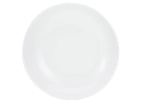 Plytký tanier s priemerom 25 cm z bieleho porcelánu ponúka dostatok priestoru na dokonalú večeru.