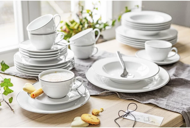Hrnček s objemom 320 ml je vyrobený z kvalitného porcelánu v bielej farbe. Čierne okraje dodávajú hrnčeku výrazný, ale úplne jemný akcent a nadčasovú eleganciu. Vďaka mimoriadnej jednoduchosti sa riad zo série Lineo dokonale hodí na každú príležitosť.