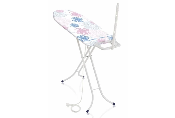 Žehliaca doska s bočnou odkladacou plochou pre žehličku a výškovo nastaviteľnou konštrukciou. Kompaktná veľkosť je ideálnou voľbou pre malé alebo stredné domácnosti. Žehliaca plocha vo veľkosti M 120×38 cm je potiahnutá bavlnenou látkou.