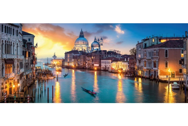 - motív: Taliansko, mesto Benátky, kanál Grande, bazilika Santa Maria della Salute, západ slnka