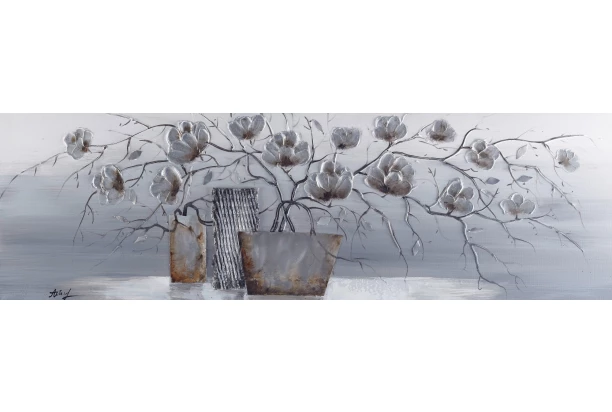 Ručne maľovaný obraz olejom s motívom dekoratívneho zátišia s vetvičkami zaujme svojou krásou, bohatými detailmi, plastickosťou a originalitou. Každý obraz je jedinečný vďaka ručnému spracovaniu umelca, ktorý prejavuje svoju kreativitu a citlivosť vo všetkých krokoch maľovania. Olejomaľba o rozmere 120×40 cm sa môže stať centrálnym bodom miestnosti nad gaučom, dokáže navodiť útulné prostredie v spálni, na stene v jedálni alebo na chodbe vie pritiahnuť pozornosť návštev a vytvoriť príjemnú atmosféru. Nástenná dekorácia sa ľahko prispôsobí rôznym štýlom bývania, kde bude vyzerať skutočne pôsobivo.