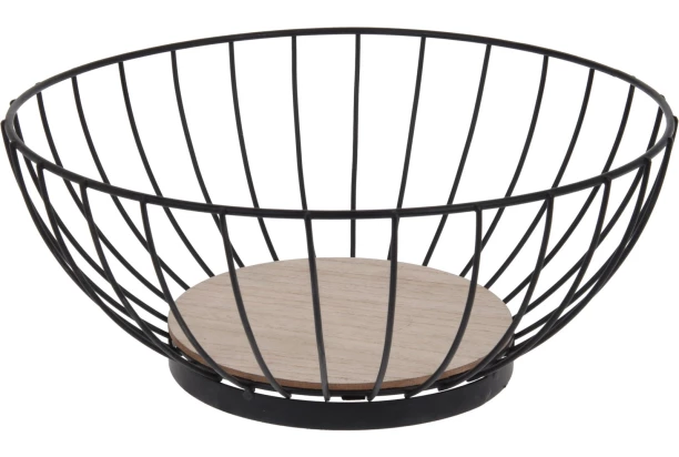 Potrebujete moderný košík na uloženie ovocia alebo na dekoratívne účely? Zaguľatený kovový drôtený kôš v čiernej farbe s dreveným podstavcom s priemerom 28 cm ponúka priestor pre Vaše praktické aj kreatívne využitie.