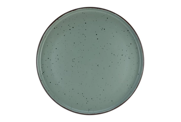 Jedálenský tanier z kameniny s priemerom 27 cm, v modernom vintage dizajne s efektom kameňa. Tanier má veľkú jedálenskú plochu a zvýšený okraj na pohodlné servírovanie. Je opatrený saténovou matnou glazúrou, ktorá mu dodáva elegantný vzhľad. Vintage vzhľad je podčiarknutý nepravidelnými škvrnami a ručne maľovaným hnedým pásom po obvode. Tanier je vhodný na každodenné použitie.