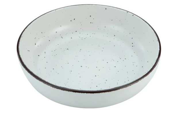 Malý hlboký tanier či univerzálna miska s priemerom 18 cm v modernom krémovom vintage štýle z kameniny je ideálnou voľbou pre menšie porcie šalátov, cereálií, polievok, príloh i dezertov. Saténovo matná glazúra prepožičiava riadu jemnú eleganciu, zatiaľ čo ručne maľovaný hnedý okraj a nepravidelné škvrny podčiarkujú jeho originálny, rustikálny vzhľad. Skvele sa hodí ako na každodenné použitie, tak aj na slávnostné príležitosti.
