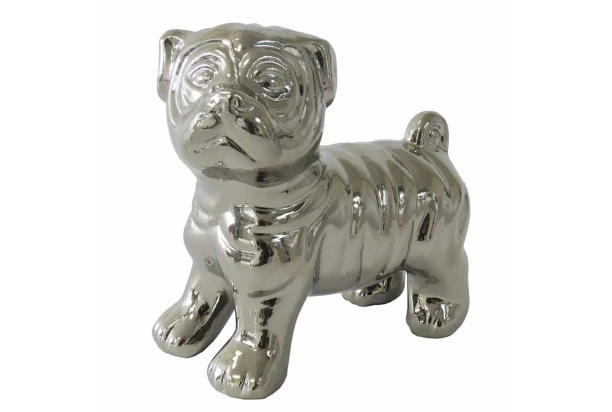 Strieborná keramická dekorácia v tvare psa o výške 12 cm zaujme svojou originalitou a stane sa jedinečným bytovým doplnkom.