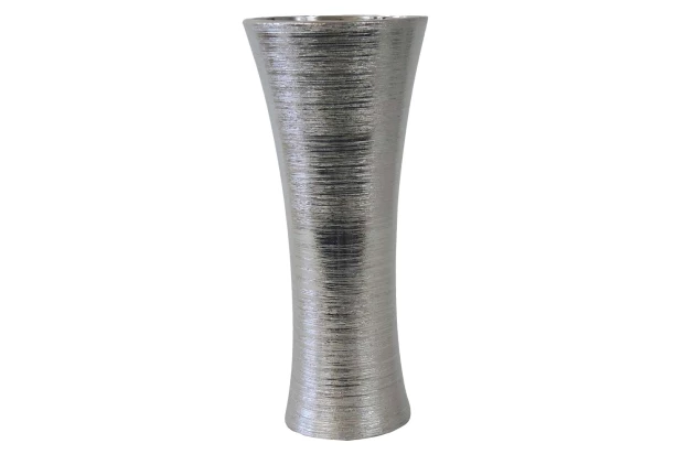 Moderná strieborná váza s efektom škrabaného laku a širokým hrdlom dodá Vašej domácnosti štýl a nádych luxusu. Váza zaujme svojim elegantným tvarom a vyniknú v nej umelé aj živé kvety. Výška 35 cm.