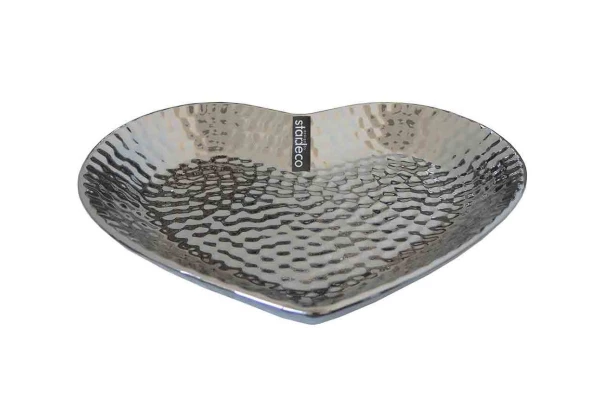 Keramická misa v tvare srdca so strieborným lesklým povrchom sa stane nielen skvelou dekoráciou, ale aj praktickým doplnkom. Pôsobí moderne a skvele dotvorí romantickú atmosféru. Rozmer 20×18 cm.