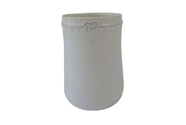 Jednoduchá keramická biela váza s motýlikom s výškou 17 cm zapadne do každej domácnosti a bude skvele ladiť s radom rôznych štýlov vybavenia a nábytku.