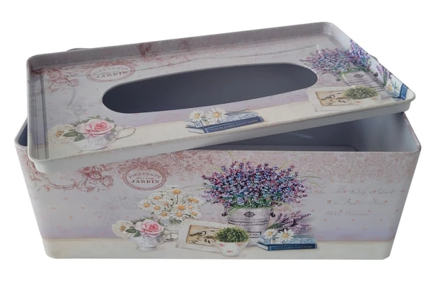 Atraktívny plechový box na papierové vreckovky, ktoré budete mať vždy po ruke. Motív kvetov pristane každej domácnosti.