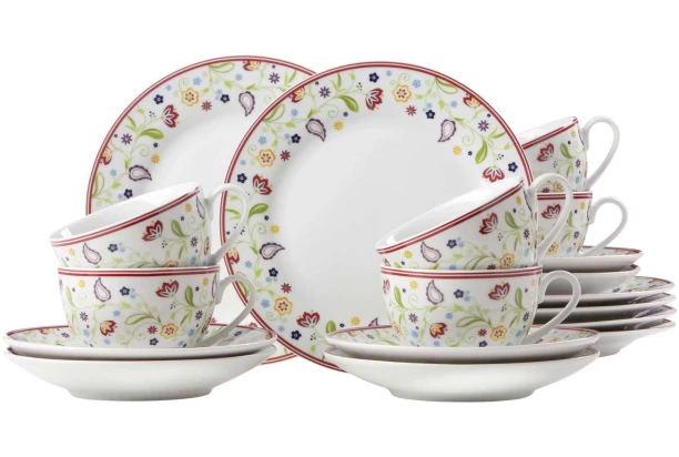 18-dielny kávový servis s motívom farebných kvetov Vás bude na stole tešiť každý deň. Riad je vyrobený z vysoko kvalitného porcelánu a dokonale zapadne do každej kuchyne. Prestrite stôl a servírujte až pre 6 osôb.