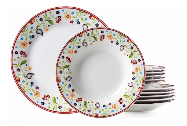 Jedálenský servis (12 dielov) Shanti, farebné kvety