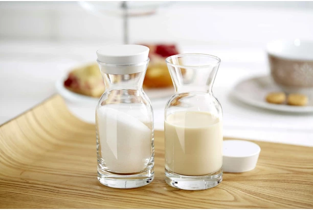 Sada sklenených nádob na mlieko a cukor vrátane silikónového viečka. Excelujte pri servírovaní kávy alebo čaju s týmito kuchynskými pomôckami.