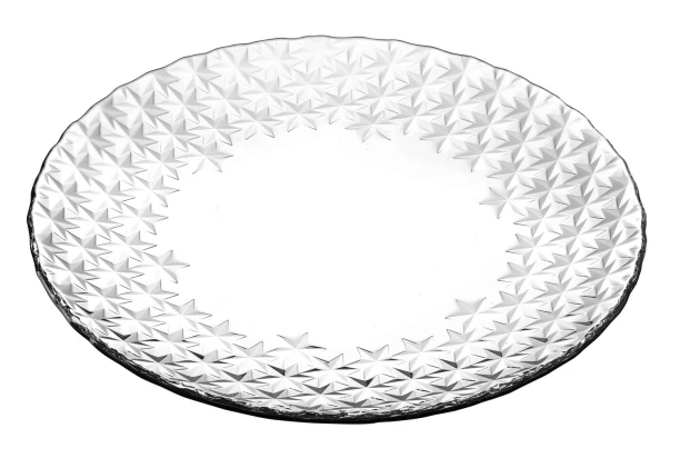 Sklenený plytký tanier s priemerom 35 cm s originálnym vzorom hviezd pristane každému jedálenskému stolu. Naservírujte tie najlepšie dobroty na elegantný tanier a povzneste stolovanie na vyššiu úroveň.