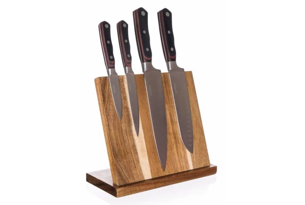 Praktická doska z akáciového dreva s rozmerom 26×23 cm je skvelý pomocník do každej kuchyne na prehľadné usporiadanie nožov, ktoré budete mať neustále po ruke. Pevné uchytenie nožov zaisťuje silný magnet vo vnútri dosky.