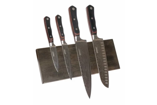 Praktická doska z gumovníkového dreva s rozmerom 30×12 cm je skvelý pomocník do každej kuchyne na prehľadné usporiadanie nožov, ktoré budete mať neustále po ruke. Pevné uchytenie nožov ,zaisťuje silný magnet vo vnútri dosky.