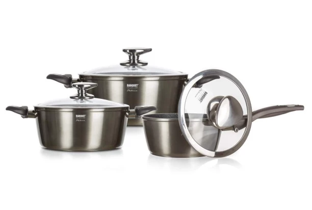 Sada hrncov Metallic Platinum s nepriľnavým povrchom je vyrobená z vysoko kvalitného hliníka s vonkajším karbónovým metalickým nástrekom a obsahuje celkom 6 dielov. Vďaka rôznym veľkostiam nájdete vždy ten ideálny hrniec na prípravu pokrmu. Riad je vhodný pre všetky typy sporákov, vrátane indukcie. Sada kuchynského riadu je určená na každodenné varenie.
