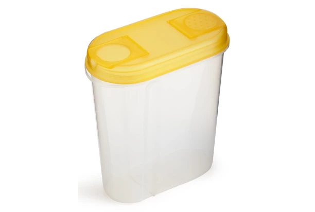 Plastová dóza s objemom 2 l s dávkovacím uzáverom je praktickým pomocníkom na skladovanie sypkých potravín, ako je napr. múka, cukor, soľ a pod. Transparentné prevedenie zaistí prehľadnosť aktuálnych zásob.