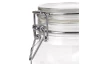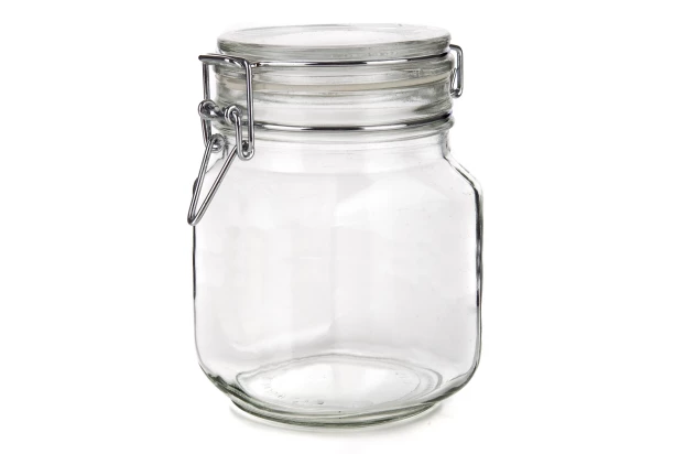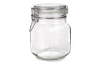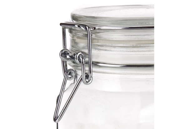 Elegantná sklenená hermetická dóza na potraviny s kovovým zatváracím patentom a skleneným viečkom osadené klasickým gumovým tesnením má objem 1 liter. Nádoba je veľmi vhodná na zaváranie drobného ovocia alebo uskladnenie suchých potravín, ako je napr. čaj, káva, oriešky, cestoviny, strukoviny atď. Drôtený systém uzáveru nie je nerezový, a preto nie je pohár vhodný do umývačky.