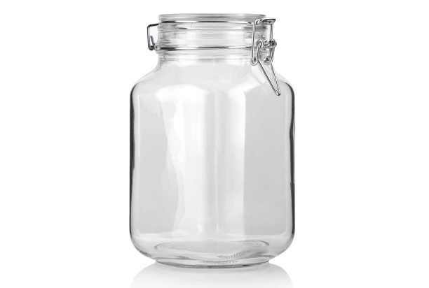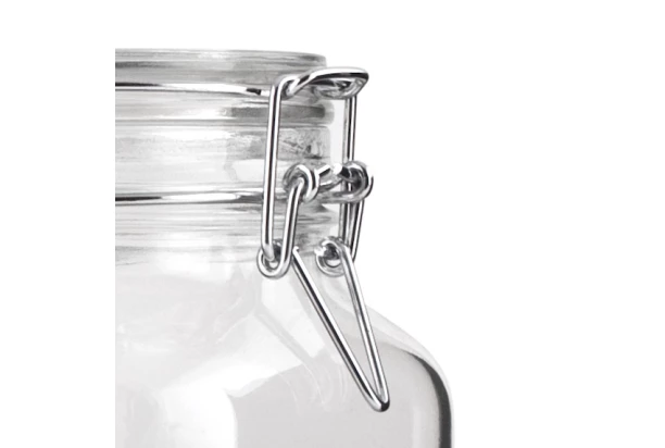 Elegantná sklenená hermetická dóza na potraviny s kovovým zatváracím patentom a skleneným viečkom osadené klasickým gumovým tesnením má objem 2 litre. Nádoba je veľmi vhodná na zaváranie drobného ovocia alebo uskladnenie suchých potravín, ako je napr. čaj, káva, oriešky, cestoviny, strukoviny atď. Drôtený systém uzáveru nie je nerezový, a preto nie je pohár vhodný do umývačky.