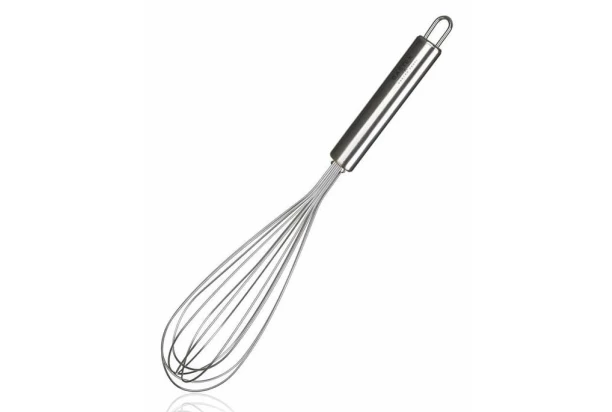 Kuchynská šľahacia metla z nerezovej ocele na profesionálne i domáce použitie. Praktická pomôcka pre rýchle a ľahké šľahanie krémov, snehu, riedkych ciest, vajec a pod. Dĺžka 30 cm.