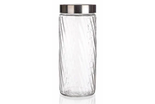 Sklenená dóza na potraviny s objemom 1800 ml s priehľadným viečkom a zvlneným povrchom stien predĺži čerstvosť skladovaných potravín, ktoré si dlhšie ponechajú svoju chuť a arómu. Vďaka číremu sklu je možné ľahko kontrolovať aktuálny stav zásob.