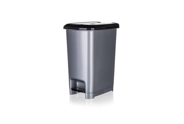 Nášľapný odpadkový kôš v šedej farbe s objemom 15 litrov je praktický a elegantný doplnok do domácnosti.