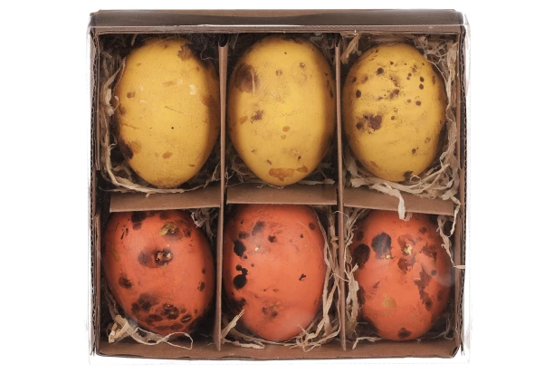 | Názov | Vyfúknuté vajíčka, 6 ks, žltá/oranžová |