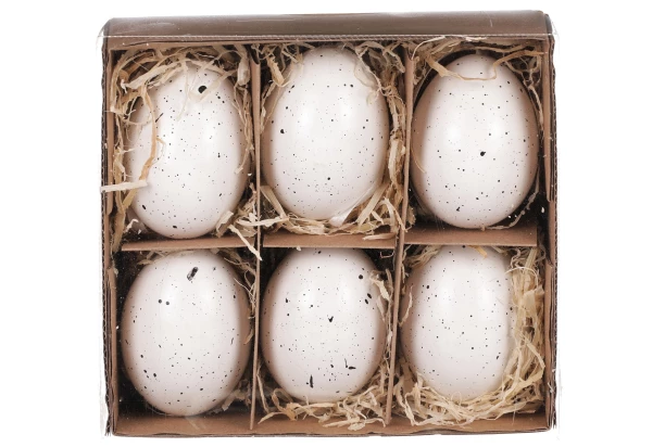6-dielna sada veľkonočných vajíčok sa stane krásnou dekoráciou a navodí tú správnu sviatočnú atmosféru. Vyfúknuté slepačie vajíčka sú bodkované, vo farbe biela.