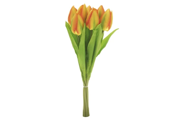 Krásne naranžovaná umelá kytica žltých tulipánov. Puget vyzerá elegantne, ozdobí každý interiér a nie je potrebné ani zalievanie.