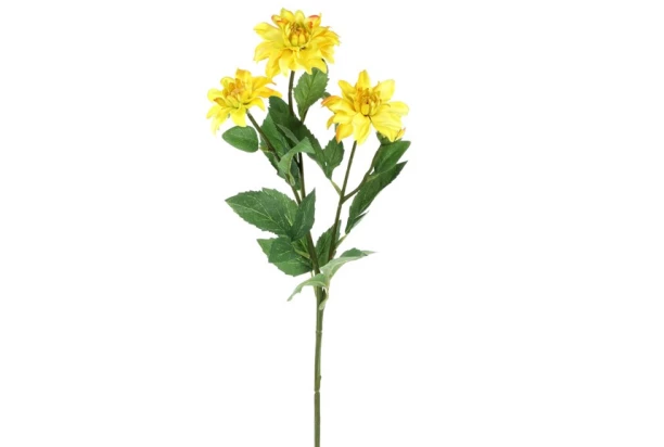Umelá kvetina georgína v žltej farbe dokonale oživí Váš interiér a vo váze bude vyzerať krásne po celý rok. Výška 75 cm.