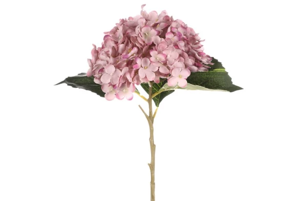 Umelá kvetina hortenzia s ružovými kvetmi skvele doplní Váš súčasný kvetinový aranžmán. Hortenzia vo váze bude vyzerať krásne po celý rok. Výška 50 cm.