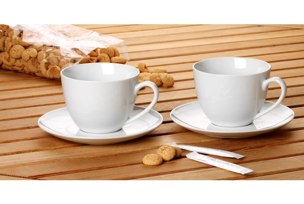 Klasický hrnček v jednoduchom bielom dizajne bez dekoru s objemom 300 ml. Šálka sa hodí na každý prestretý stôl.