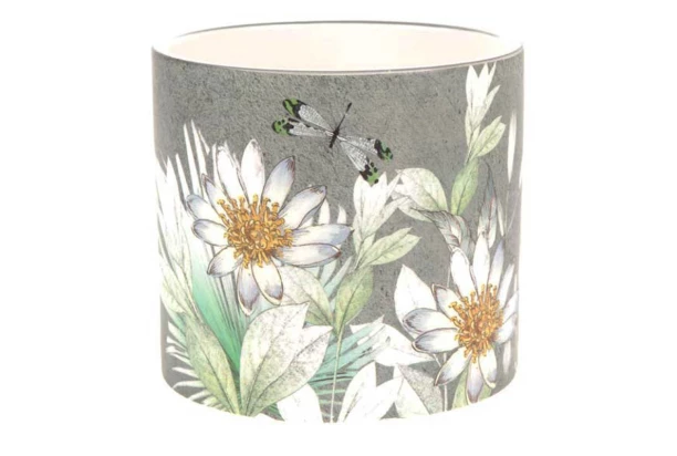 Keramický okrúhly obal na kvetináč s dekorom lúčneho kvetu v matne šedej farbe podčiarkne krásu všetkých kvetov. Nielen praktický doplnok, ale aj štýlová dekorácia na oživenie interiéru. Výška 10 cm..