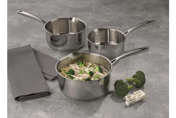 Elegantná sada rajníc na varenie obsahuje celkom 3 diely a je vyrobená z kvalitnej nerezovej ocele pre zdravé a chutné varenie. Môže byť použitá so všetkými typmi sporákov, vrátane indukcie.